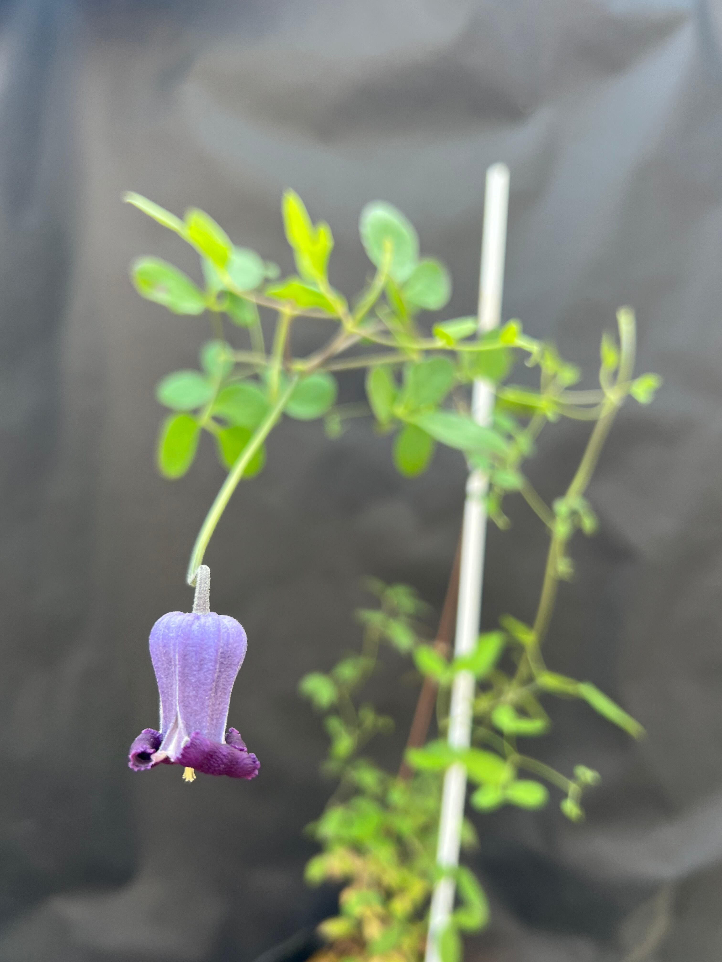 特徴 :ネブラスカ州東部からインディアナ州西部及びテキサス州の一部に分布します。Viorna系の中では極めて特徴的なクレマチスの原種です。繁殖が実生に限られ、開花までに最短でも3年以上必要とするため、生産量が少なく、更に純粋な種を入手することが難しいため、交雑していない本種を入手するルートは極めて限られています。花型、色共に、極めて魅力的なクレマチスです。蔓は3-4mまで伸びますので一般的には蔓バラやバーゴラに這わせます。この個体はpurple の濃色個体です。このタイプは来年あたり花が大きくなり太くなります。写真は4/16日に撮影したものです。15cmロングポットです。お届けに際しては蔓を丸めてご送付させて頂きます。また、花が終わった場合は強剪定したものをお送りいたしますが、再び蔓が延びて、夏〜秋に開花します。冬場は休眠します。蔓は枯れますので株元でカットしマルチングしてください。