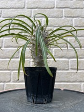 Pachypodium mikeaは、アフリカ マダガスカル南西部の乾燥林地域に自生するパキポディウムの一種で、そのユニークな見た目と成長特性で多くの愛好者に親しまれています。特に優れた適応能力を持ち、乾燥した環境に適応した品種です。特徴的な膨らんだ塊根は、自然界では水分を蓄えるための重要な役割を果たします。また、幹の表面は滑らかで、成長することでより一層魅力を増します。