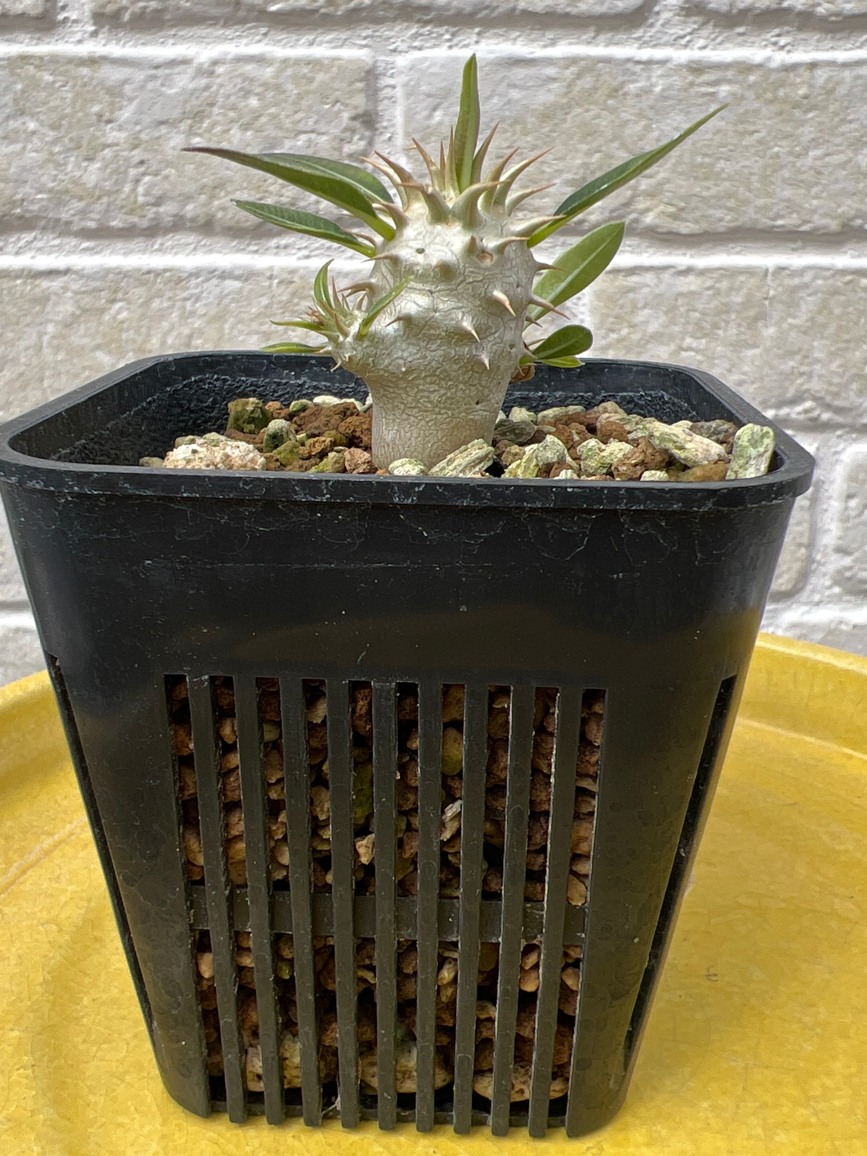 この植物は、乾燥した環境に適していますが、明るい日差しを確保することが育成のカギとなります。水はけの良い土を使用し、赤玉土やパーライトを適切に配合した土壌で育てましょう。特に冬場は休眠期に入るため、水やりは控えめにして、土が完全に乾いたタイミングで行うのが理想です。成長期には、薄めの液肥を月に1~2回施すと健やかな成長が促されます。本個体は実生のため、成長には時間がかかることがありますが、育てる楽しみを存分に感じながら、一緒に成長していく喜びを味わっていただけます。