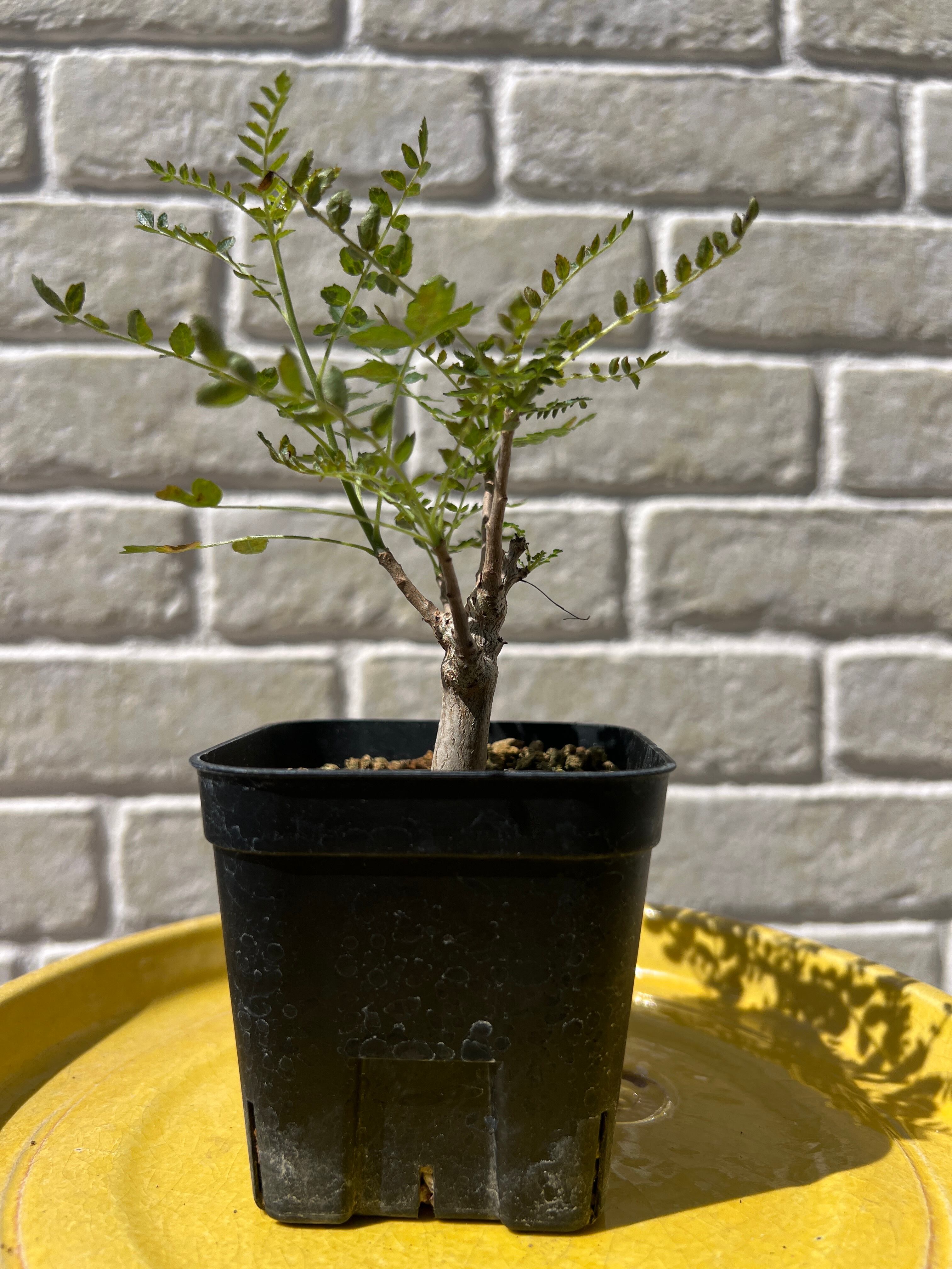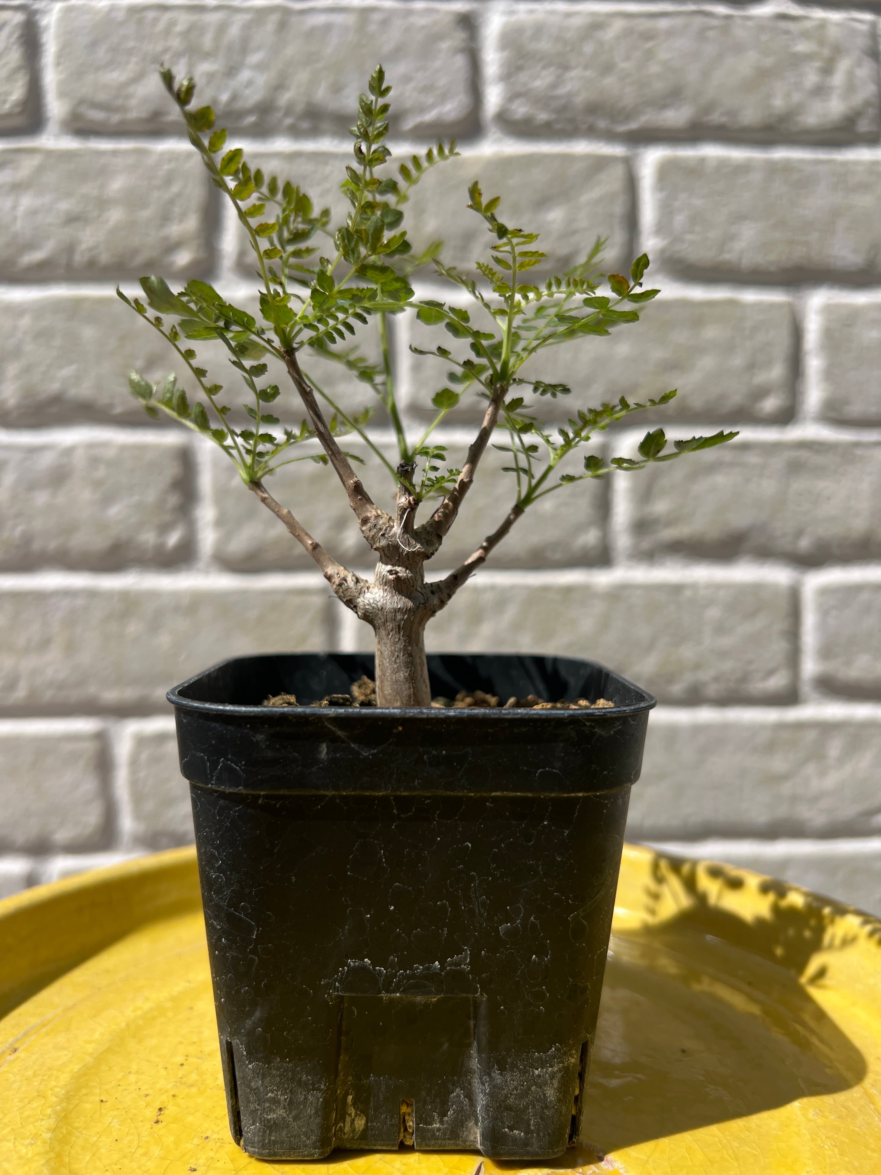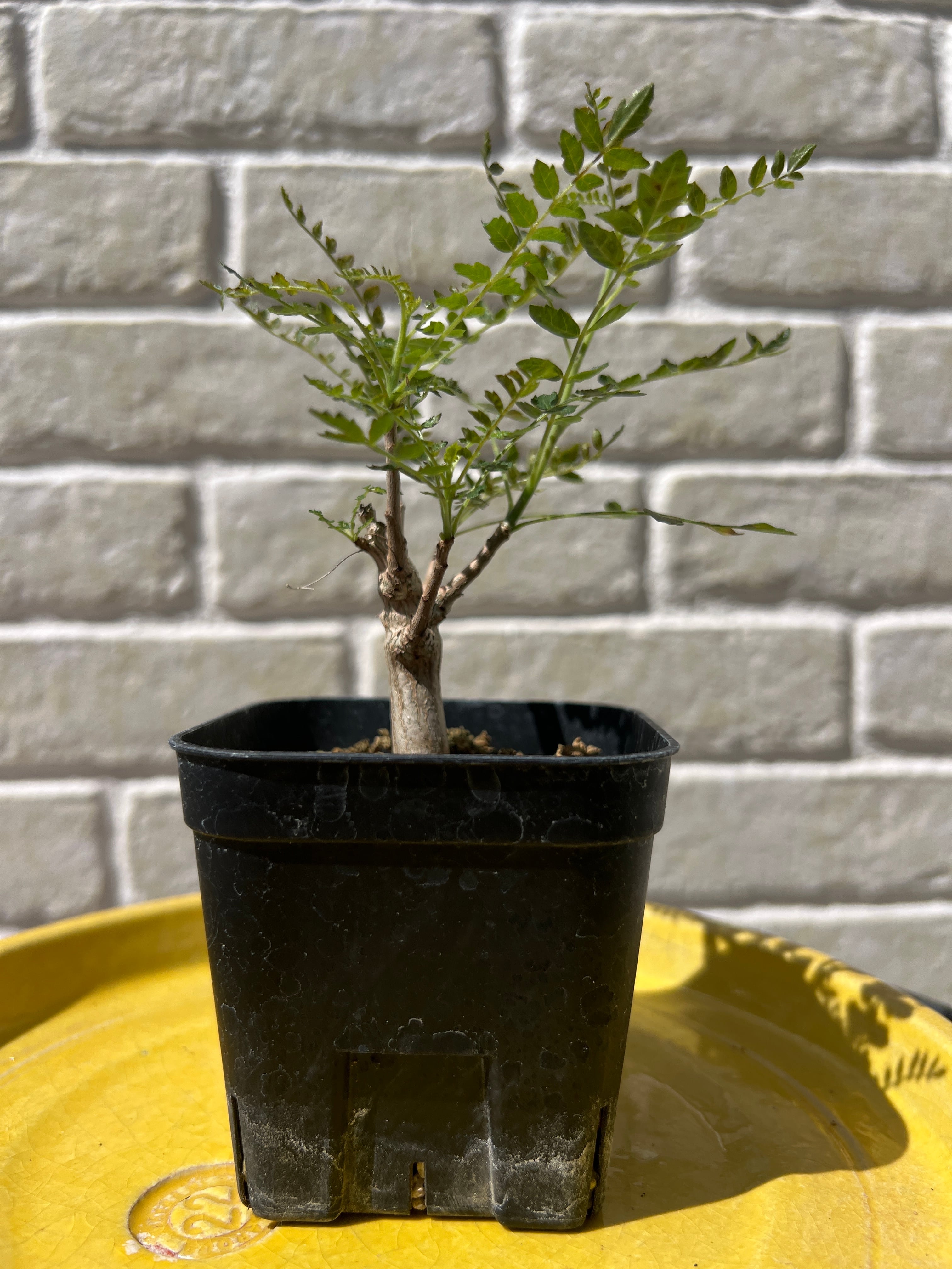 幹と樹皮、幹はぼこぼことした独特な樹肌をしており、成長はゆっくりですが、古木になると風格のある姿になります。特徴的な羽状複葉は他のBoswelliaに比較して非常に細かいのが特徴です。