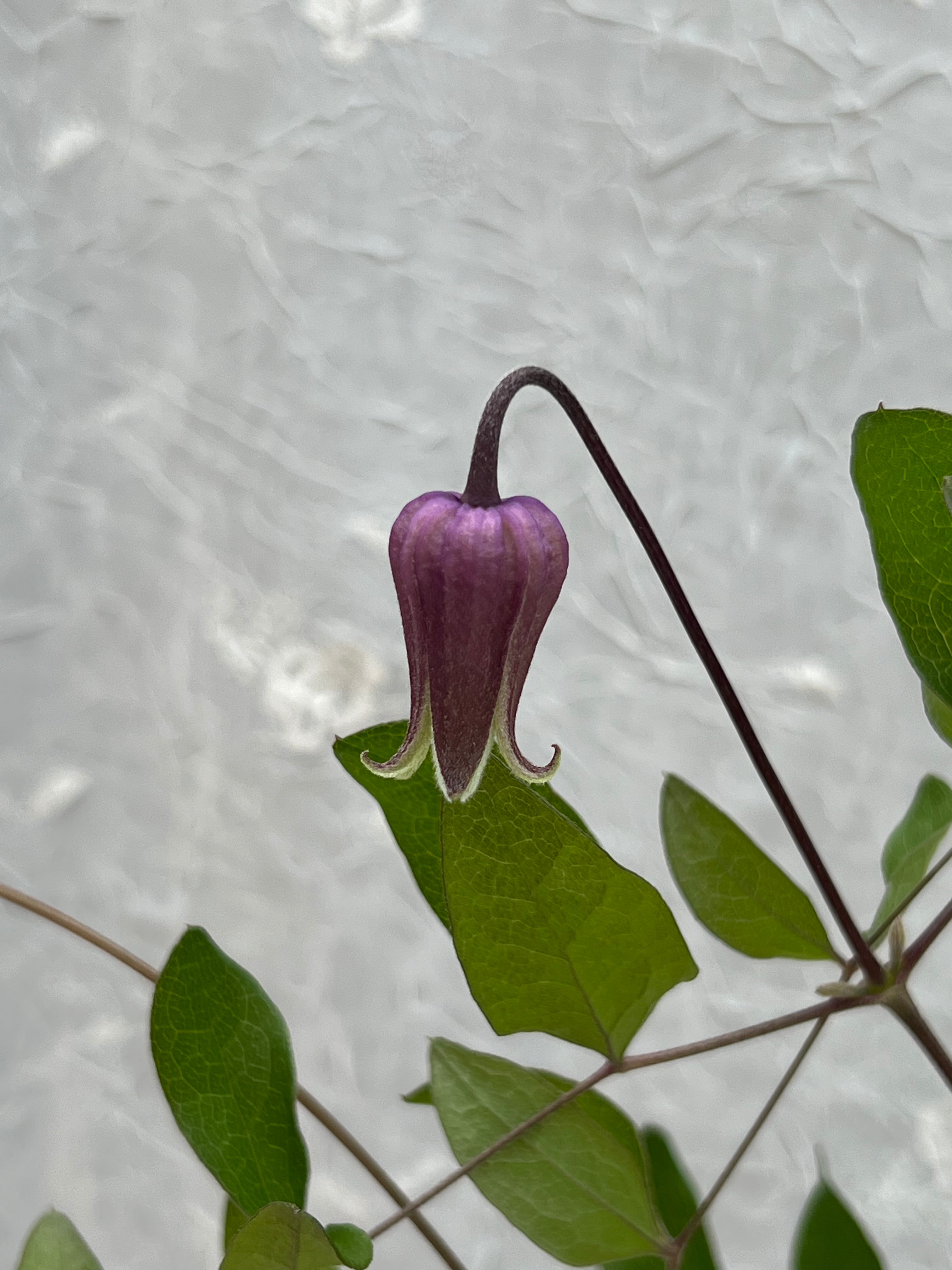 Viorna系の交配個体です。花は(3.0cm X2.5cm)中粒です。花はシックなpurple とgreenの個体です。ステムが3本で木立性です。もう一作すれば、一回り大きな花になると思います。