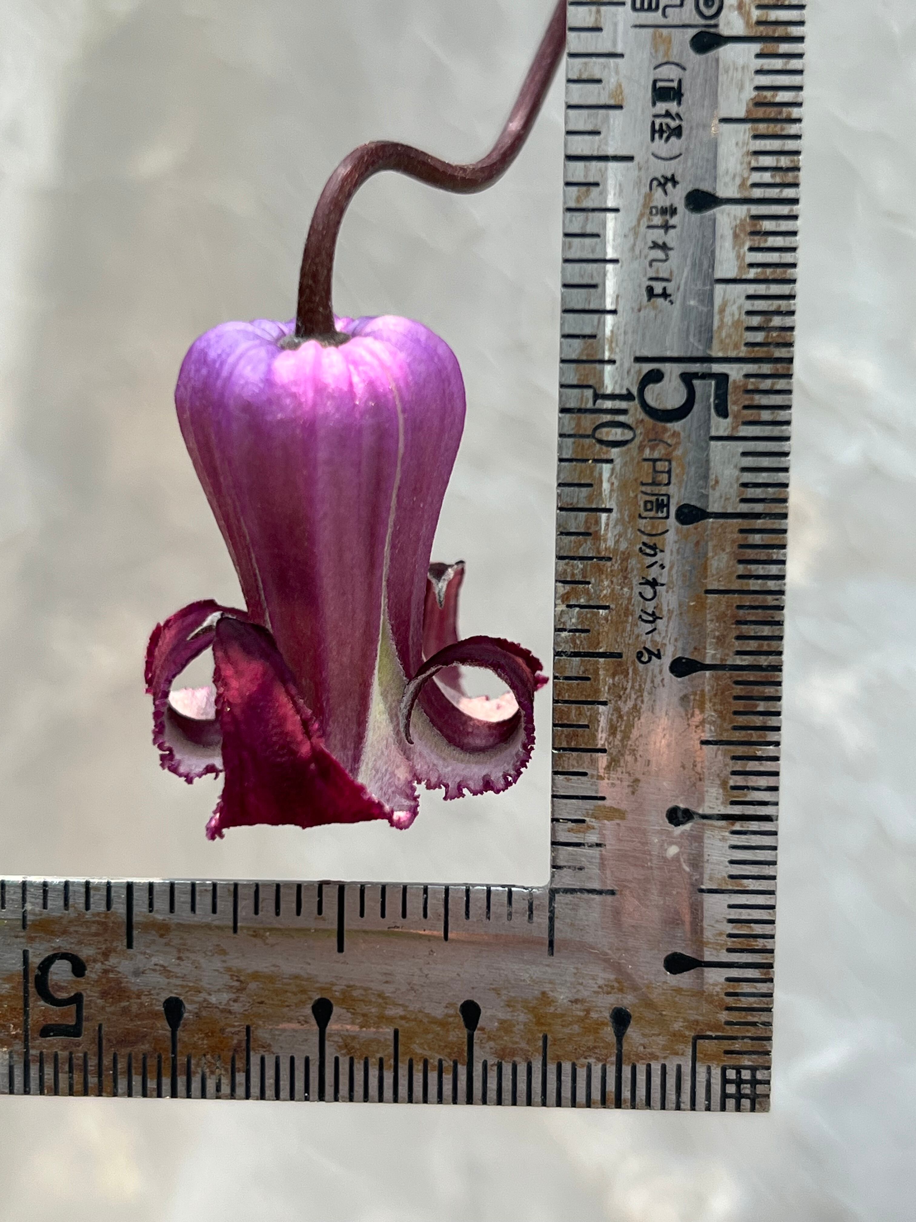 発送に際しては、伸びた蔓をコイル状に丸めて梱包します。その際、植物の性質上、花が落ちたり、希に蔓が折れる事もあります。この点をご了承の上ご購入のご判断をいただければ幸いです。