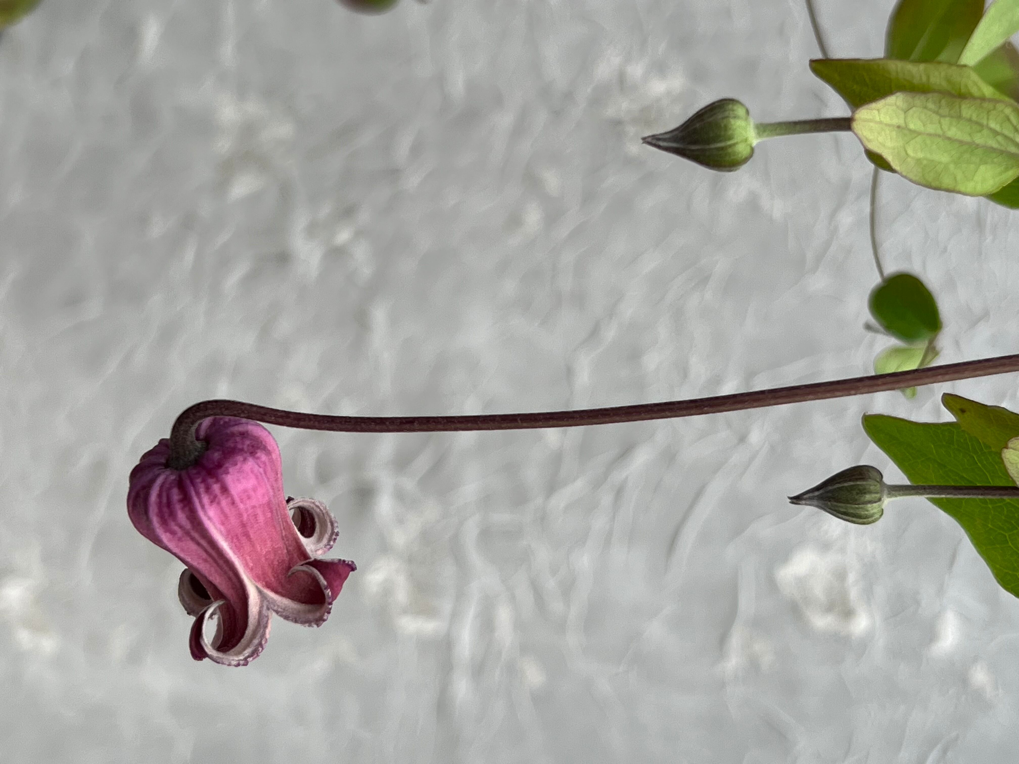 Viorna系の交配個体です。花はRedish purple の個体です。画像は6/2日に撮影した物です。