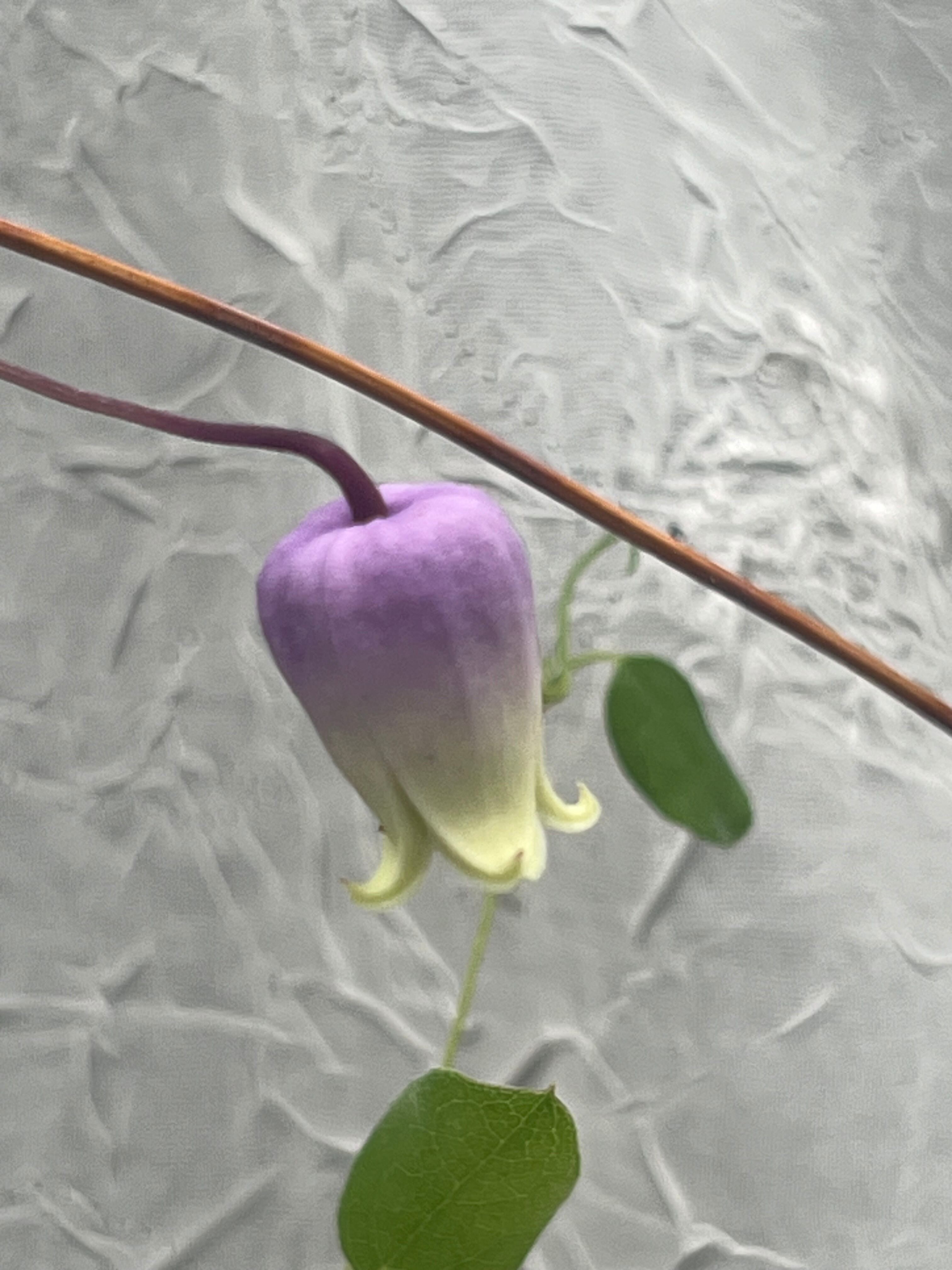 特徴 :テキセンシスと同様にネブラスカ州東部からインディアナ州西部及びテキサス州、テネシー州の一部に分布します。他のViornaの様に葉に鋸歯が見られないのが特徴です。ラベンダー色のボディーに先端がグリーンにに変化するのが特徴的なクレマチスの原種です。繁殖が実生に限られ、開花までに最短でも3年以上必要とするため、生産量が少なく、更に純粋な種を入手することが難しいため、交雑していない本種を入手するルートは極めて限られています。本個体は2015年にテネシー州で採取した種子からの実生個体です。花型、色共に、極めて魅力的なクレマチスです。蔓は2-3mまで伸びますので一般的には蔓バラやバーゴラに這わせます。この個体は典型的な色と形態を呈しています。高温期のため、花はすぐに咲き進みます。多少葉に傷みがあります。発送に際して植物の性質上、花が落ちたり、希に蔓が折れる事もあります。この点をご了承の上ご購入のご判断をいただければ幸いです。4号ロングポットです。